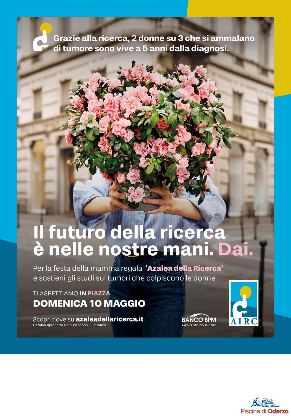 Domenica 10 maggio in Piazza Carducci (di fianco al Duomo) a Oderzo e in piscina Arca trovi le Azalee per la ricerca. Iniziativa promossa da Airc a cui Arca presta da anni la propria collaborazione.